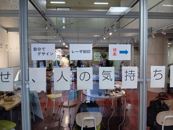 「環境に優しいものづくり」と称して、レーザ加工の紹介をしました。来場者には、世界で一つだけのハンコをレーザで作ってもらいました。ゴムの品質選定から木材の切断と塗装、加工条件出しは、 辻野君、達田君、松島君が準備段階から尽力してくれました。当日は80人ほどが来場し、大忙しでした。皆さんに喜んでもらえてよかったですね。